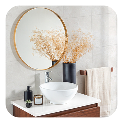 A utilitarian space like a bathroom can easily be glammed up by adding a stylish mirror. Think of mirrors as “jewelry,” bringing personality and elegance to such a small space. If your bathroom still has that plain builder-grade mirror, it's time to see things clearly and elevate things a bit. You have lots of options: replace it with a vintage find to add a unique charm, or choose a mirror with LED lights built into the frame for a modern, sophisticated look you would find in an upscale hotel. If you don’t want to swap out your mirror, try adding a frame to the existing one for a more affordable aesthetic upgrade.